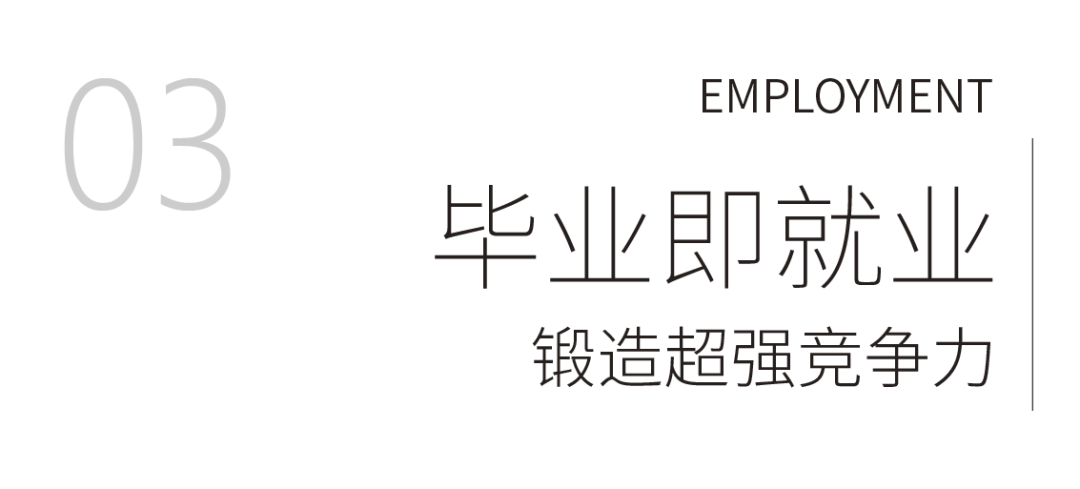 200+行业领军企业(包括众多国内500强企业)合作资源,为学生铺就广阔职业道路,保障就业质量优、起薪高、发展前景好。