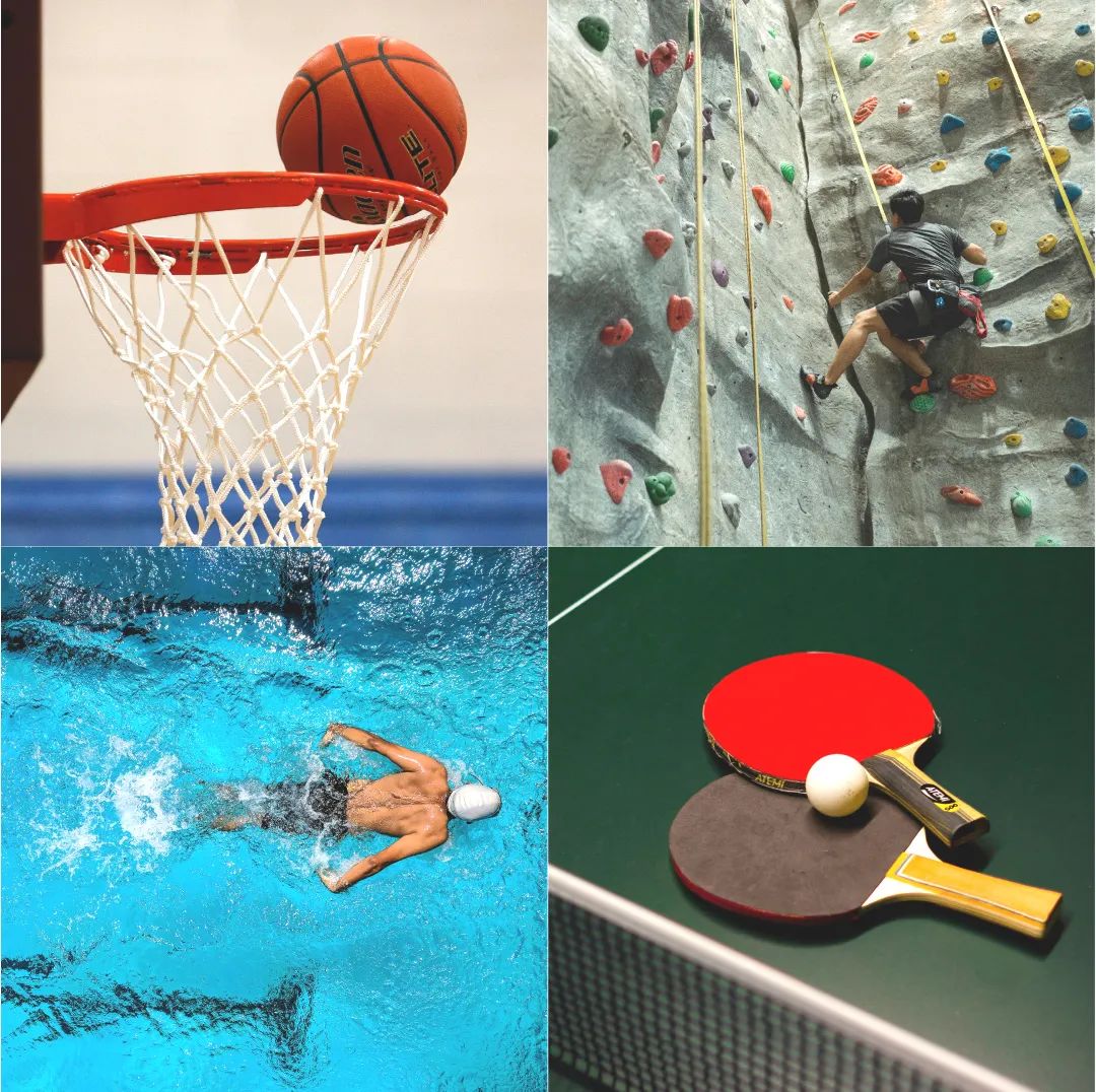 2个铺设德国DIN标准实木地板的NBA赛事级篮球馆、1个16x25米的6泳道恒温游泳池、1个配备全套专业器械的豪华健身房,乒乓球馆、羽毛球馆、400米标准田径场一应俱全。